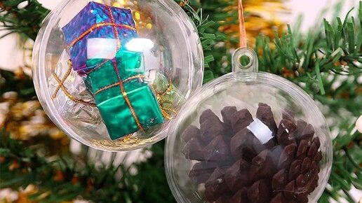 Красивый декор обычный пластиковых ёлочных шаров. У вас точно получится!