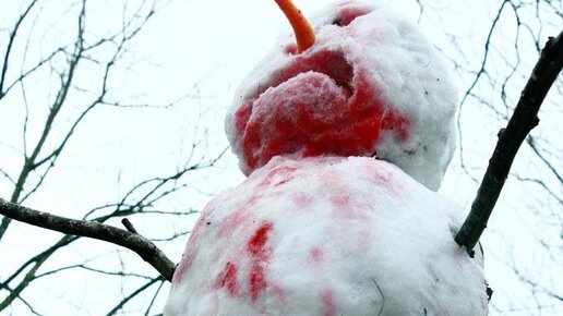 Пока одна часть страны страдает от слякоти и мечтает о снеге, другая этим снегом просто завалена. Самое время выйти на улицу и слепить снеговика. Занятие полезное для здоровья и определенно веселое, особенно если заниматься этим в компании. Тем, кто устал уже от однообразных снежных фигур, предлагаю пару идей для создания жутких и страшных снеговиков, которые вы можете воплотить не имея при себе специфического реквизита и огромного художественного таланта. Поехали! Любая снежная фигура станет жуткой, если облить ее красной краской (казалось бы, ведь это элементарно!)...