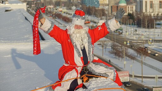 Дед Мороз-альпинист: приходит через окно и халат нараспашку