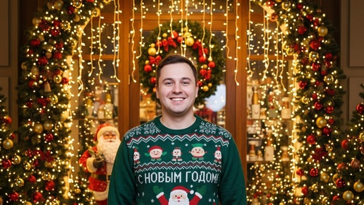 🎄 Нашел промпт для идеального праздничного портрета, который выглядит как профессиональная съемка в дорогой студии. Главная фишка — можно выставить сходство с референсом на 100%, чтобы нейронка не гадала, а выдала именно твое лицо (или того самого парня). Текстура свитера, блики гирлянд и глубина фона — просто имба. Подходит для SeeDream, Nano Banana. Промпт для фото: Create a vibrant Christmas portrait set in front of a richly decorated storefront or interior entrance, overflowing with holiday lights and ornaments...