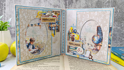 Всем осенний привет!!! И сегодня вдохновляю вас я, Юлия Малышева. На этот раз я решила создать фоторамку из коллекции "Школьная жизнь". До сегодняшнего дня не было еще в моей творческой коллекции школьной фоторамки для своих детей. Как говорится, "сапожник без сапог". Но я исправилась, так что теперь вот такая рамочка с фотографиями моих детей (дочка Вика и сыночек Рома) будет стоять у меня на рабочем столе. Размер фоторамки в сложенном виде 17х15 см, в корешке 2 см, обтянута очень приятным микровельветом бежевого цвета...