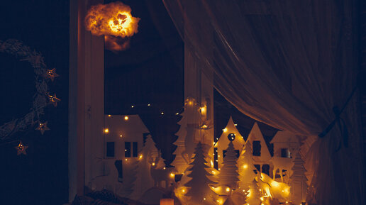 Очень давно я мечтала о такой чудесной деревеньке на подоконнике, именно воздушной и загадочной, с тенями и огоньками. И когда мы решили делать дома фотозону, подоконник был однозначно включен в проект. Все подробности как мы создавали фотозону, делали декор, венок, подушки, деревеньку есть в видео, которое я предлагаю вам посмотреть На самом деле, в новогодней локации была только одна сложность — это место, комната у нас все-таки узкая...