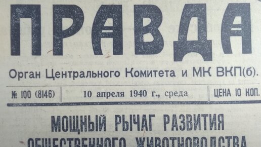Здравствуйте! Держу в руках номер газеты Правда, увидевший свет ровно 80 лет назад, 10 апреля 1940 года. Номер объемный, 6 страниц. В нем много интересного, но формат и время не позволяет рассказать обо всем. Мир бурлит событиями. Идет война в Китае. Война между Англией, Францией и Германией. Если на суше идет, то что называлось "странной войной", то на море она весьма реальная. Только закончилась советско-финская война. В номере опубликовано фото военнослужащих, отличившихся на фронте и которым указом Президиума Верховного Совета СССР, было присвоено звание Героя Советского Союза...