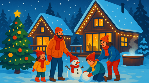Семейный Новый год на природе: уют, огоньки и снежные прогулки