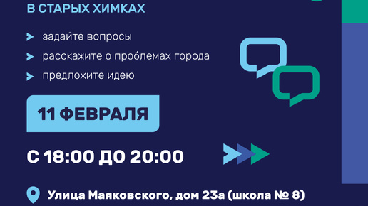 В следующую среду, 11 февраля, в Старых Химках пройдёт выездная администрация. Представители управлений ответят на вопросы жителей и примут предложения по развитию города.