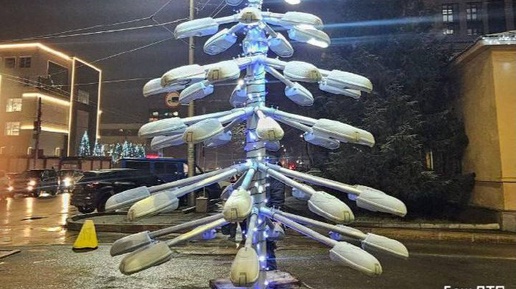 😏 Очень яркая елка появилась в Уфе Она стоит на перекрестке улиц Пархоменко и Ибрагимова. Ее сделали из старых городских фонарей. Арт-объект создан сотрудниками «Уфагорсвет» из списанных светильников по энергосервисному контракту...