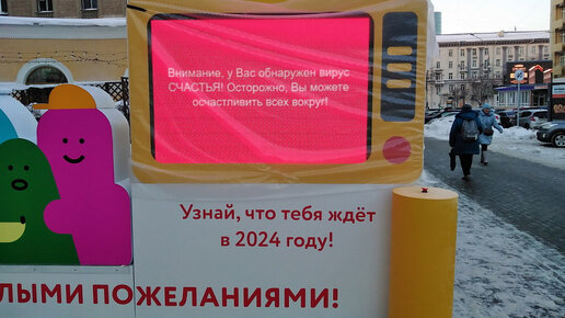 На минувших выходных в центре Новосибирска на улице Ленина установили и настроили генератор новогодних пожеланий и предсказаний от Сибирской генерирующей компании. Аппарат заработал в понедельник, 25 декабря. Лариса Сокольникова Узнай, что тебя ждёт в 2024 году — предлагает устройство с большим экраном, установленное возле кинотеатра «Победа». Чтобы получить персональное предсказание и поздравление от СГК, нужно нажать красную кнопку, расположенную на тумбе справа от экрана. Через секунду на нём появится шуточный текст...
