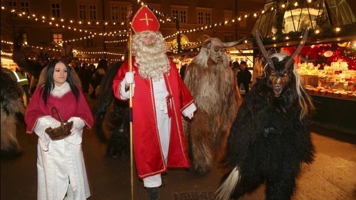 Давайте изучим немецкие рождественские традиции от прошлого до настоящего, от Крампуса до рождественского ангела. В Германии рождественский фестиваль называется Weihnachten. В рождественский сезон стандартное приветствие — «Счастливого Рождества!». Произносится оно так: «ФРО-э ВАЙН-ак-тин». Немцы верят, что у святого Николая есть дьявольский помощник по имени Крампус. Пока хорошие дети получают подарки, чудовищная фигура наказывает непослушных. 5 декабря он посещает детей, которые плохо себя вели, чтобы напугать их...