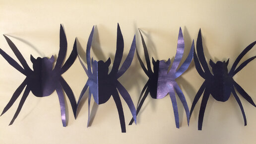 Добрый день! Сегодня будем делать поделки к Хэллоуину. Предлагаю сделать гирлянду из пауков. Нам потребуется: 1). Лист бумаги А4 (черного цвета); 2). Ножницы; 3). Простой карандаш. Берем лист бумаги А4 (черного цвета). Складываем пополам и разрезаем по линии сгиба. Берем одну деталь и складываем пополам. Складываем еще раз пополам...