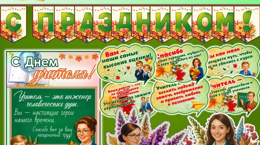 В преддверии одного из самых светлых и мудрых праздников — Дня учителя, который мы отмечаем 5 октября 2025 года, — наш неутомимый мышонок Дум Думыч приготовил для вас особенный оформительскй комплект! Набор идеально подходит для украшения классного кабинета, актового зала, холла и любых других помещений в школах и образовательных центрах — как для создания праздничного настроения, так и для проведения торжественных мероприятий...