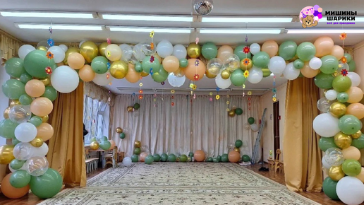 Украшение актового зала шарами ко Дню учителя