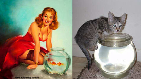 Всем любителям кошечек и pin-up посвящается! Очень интересный арт-проект «Cats That Look Like Pin Up Girls» (Кошки, которые выглядят как девушки pin up) был создан австралийским фрилансером Рэйчел Эслетт (Rachael Aslett) для рекламы альтернативного магазина одежды. Идея предельно проста: сначала выбирают картинку очаровательной девушки pin-up, а затем подбирают соответствие среди бесчисленного множества фотографий кошек — или наоборот...