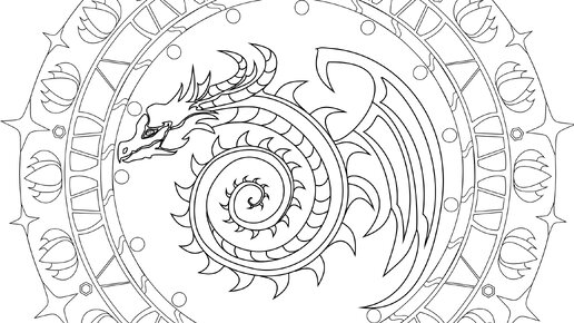 Новогодние раскраски. Раскраска год Дракона. Мандала раскраска.