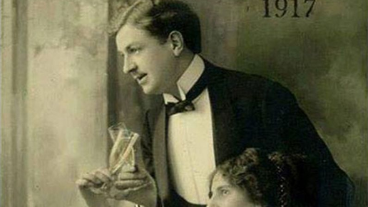 Новый год разных лет: 1917. Ох, не знает эта элегантная буржуйская пара, с надеждой всматривающаяся в падающий за окном прошлогодний снег, что их ждёт в наступившем Новом 1917 году. Не знает... Предновогодняя почтовая открытка на Новый 1917 год 1923. А ждало вот это...: Михаил Черемных (1890—1962). «Нэпман: — Поздравляю вас... товарищ... с новым годом! Красноармеец: — Во-первых, я тебе не товарищ, а во-вторых, я уже справил свой новый год 7-го ноября!» 1953. Наступает новая эпоха благополучия...