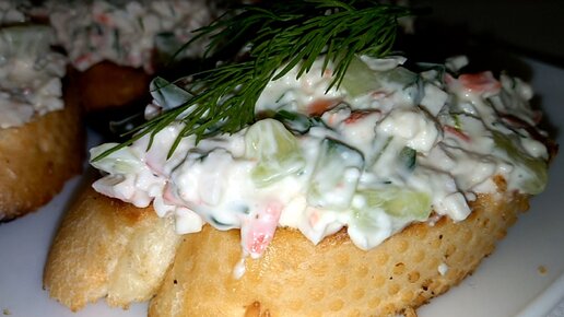 Гренки с намазкой, Вкуснейшая закуска на праздничный стол | Новый год 2021 хрустящие гренки из багета с очень вкусной, нежной начинкой из крабовых палочек, с огурцом, плавленым сыром и чесноком. Если подать...