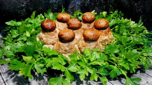 Привет, Друзья! Предлагаю идею к праздничному новогоднему столу - эффектное горячее блюдо ГРИБНАЯ ПОЛЯНА. Красиво, просто и доступно! Блюдо готовится не сложно из обычных продуктов. При этом выглядит потрясающе красиво и аппетитно! Все гости будут в восторге! Сочная запечённая котлета, а внутри расплавленный сыр, да ещё и с грибочками! РЕЦЕПТ