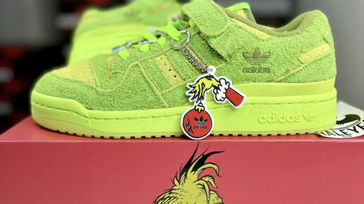 1 декабря 2022 компания Adidas представила нам коллаборацию с пожалуй одним из самых узнаваемых новогодних персонажей: шалуном, проказником и похитителем рождества: Гринчем Верх силуэта покрыт зеленой замшей, повторяющей мех «похитителя Рождества». Травяной цвет дополнен вставками более светлого салатового оттенка. На одном из язычков классический ярлычок с логотипом «Trefoil» заменен на коварные глаза Гринча. Комплект этой пары кроссовок очень богатый Внутри невероятно красивой коробки вас ждут...
