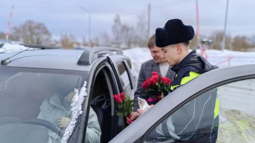 В Гусь-Хрустальном прошла праздничная акция ДПС «Цветы для автоледи»