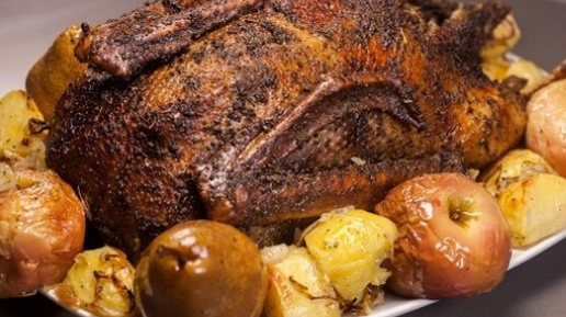 Гусь в духовке! Если еще не придумали, что сделать на Рождество или другой праздничный стол, то возьмите на заметку этот вариант, как приготовить гуся в духовке целиком с аппетитной начинкой. Это чрезвычайно аппетитное и очень праздничное блюдо. В данном случае гусь дополнен не только довольно привычными яблоками, но и сухофруктами, замоченными в алкоголе. В качестве гарнира используются фрукты и картофель. Очень вкусно получится в результате. Продукты: Гусь  — 1 Штука Картофель  — 4-5 Штук...