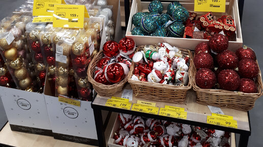 Зашла в магазин Hoff 02.01.2022г и попала на новогоднюю распродажу. Елочные украшения и декор со скидками до 70%.