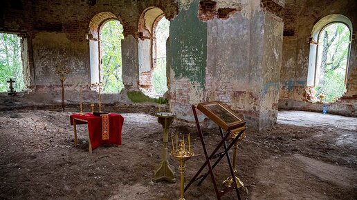 В заброшенном храме в Рождествено Козельской епархии отслужили литургию. Фоторепортаж