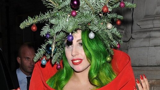 Приветствую, читатели. Многие хотят выглядеть блестяще. Но иногда что-то идёт не так. Чего мы только не видим от знаменитостей. Иногда их наряды оставляют желать лучшего. И непонятно, чем они руководствовались, когда надевали такое. Или они хотели выделится, или им реально нравится такая одежда. В этой статье я решила отобразить несколько нарядов, которые чересчур яркие. Первое место Lady Gaga. Про её наряды чего только не говорят, но это полностью соответствует заголовку. На ней ёлка, точнее несколько веточек с этого дерева...