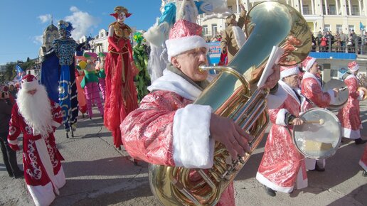 Вчера на набережной Ялты прошёл десятый, юбилейный Мороз парад. Было очень весело, сразу появилось Новогоднее настроение. Все улыбались и махали в камеру. В параде приняли участие не только школьники, студенты, спортсмены и музыканты, но и "моржи", байкеры, ходулисты и даже парапланеристы. Команды собрались из разных городов Крыма, в шествии приняло участие 900 человек...