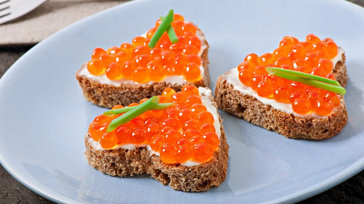 Нарежьте хлеб на небольшие ломтики и подсушите его в духовке или на сковороде. Намажьте каждый кусочек сливочным сыром и аккуратно выложите небольшую порцию красной икры...