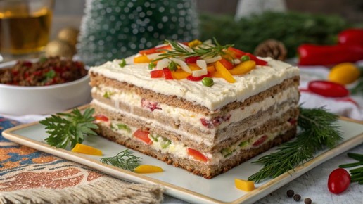 Рождественский закусочный торт: сытный и праздничный