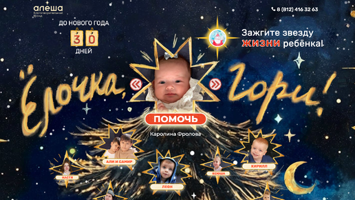 Сегодня, в первый день зимы, мы запускаем нашу традиционную новогоднюю акцию «Ёлочка, гори!». Уже третий год подряд она помогает совершать самые важные чудеса — спасать жизни. В прошлом году благодаря вам мы помогли 53 детям. В этом году на нашей ёлке — 35 звёзд. Каждая из них — это ребёнок, ждущий своего шанса на спасение. Как только сбор на лечение будет закрыт, звезда ребёнка загорится ярким светом. Наша общая цель — зажечь все 35 звёзд к Новому году. Но сегодня мы хотим рассказать об одной звезде особо...