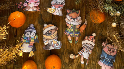 Я нарисовала уже два таких набора. В первом - Ёлка, Дед Мороз, Снегурочка, снеговик, тигр, олень, заяц : Во втором наборе - тигрица, свинка, пингвин, кошка, лиса, медведь, мышь: Набором для изготовления снеговика я уже ранее делилась со всеми желающими бесплатно. А сейчас публикую набор с символом года-с тигрёнком: Скачивайте, печатайте и творите! Это два варианта...