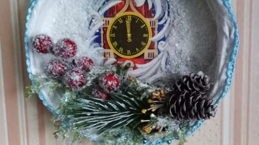Для данной игрушки-панно использовала гофрокартон (круглое основание) и мои любимые бумажные трубочки (газетная лоза), из которых сплетена эта круглая корзиночка. Старая открытка помогла создать основной фон. Ну, а потом в работу вступили салфетки, зимний декор, бусины, шнур, искусственный (самодельный) снег, немного кружевной тесьмы, акриловые краски, акриловый лак, глиттеры, клей...