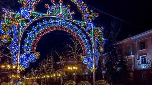 Общая протяженность гирлянд в городе более 18 км, светится более 48000 ламп