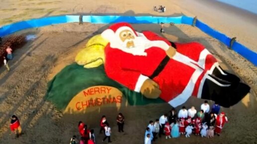 Скульптор из Индии Сударсан Паттнаик создал гигантскую фигуру Санта-Клауса из песка и помидоров. Ее ширина - 18 метров, высота - 8 метров. Скульптура сделана на пляже у города Гопалпур. Паттнаик написал в соцсети, что для создания фигуры понадобилось 1,5 тонны помидоров...