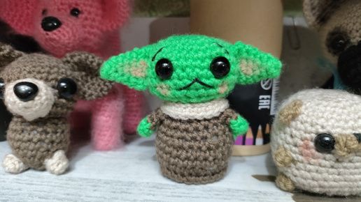 Прекраснейшего всем дня! Закончив вязать второй квадратик для собаки, решила связать маленькую игрушечку по готовому описанию, которое у меня давненько ждало своей очереди в закладках. Малыш Йода (Дин Грогу) - персонаж из сериала "Мандалорец", который относится ко вселенной Звездных войн. Для вязания я взяла пряжу Пехорка Детская Новинка трех цветов - зеленую (экзотика), капучино и бежевую. Вязала крючком номер два. Автор предлагает использовать глазки 8 мм, но я взяла побольше - 10 мм. Вот этот маленький остаточек зеленого у меня даже не извязался весь, новый моток распечатывать не пришлось...