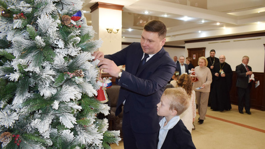 Новогодняя ель в ивановской мэрии засияла детскими этно-игрушками: старт Году единства народов России дан творческим символом