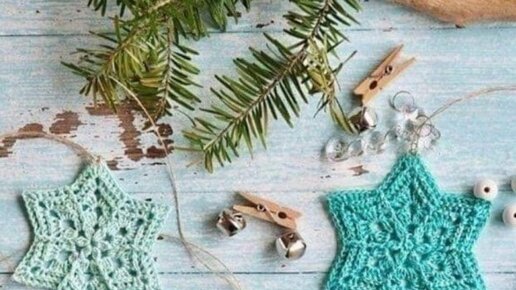 Снежинки на ёлку из пряжи Совсем скоро Новый Год. И пора бы начинать к нему готовиться. Новый Год - праздник детства. Мандарины и хлопушка, Дед Мороз со Снегурочкой и конечно же елка. Наверняка у всех есть ёлочные игрушки, гирлянды, серпантин и разные украшения. А вы знали, что снежинки можно связать самим и украсить ими любую ёлочку. А также их подарить всем гостям на празднике. Милый подарок своими руками особенно хорош. А ещё, я так делала и не раз..... Сейчас расскажу. Вот представьте - Новый Год наступил, все получили подарки под елочкой и тут ещё один сюрприз...