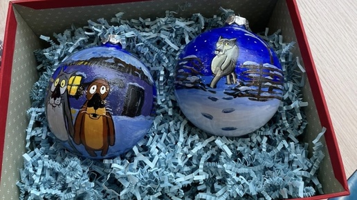 Домик простаквашино шар стекло 10 см ,написание этого шара ушло примерно 2 часа целая коробка что бы погрузится в то детство ,то самое ,когда нам доставали из чердаков и антресолей те пыльные коробки 📦 с отвисающими и поблескивающим из них мишуры и той радость в сердце предвкушением того чуда как мы разглядывали те самые игрушки ,космонавты,кукурузы ,конфеты и сосульки...