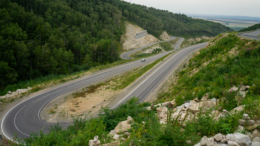 Я-то думал, что после Чуйского тракта меня уже ничем не удивишь. Но почти перед самым отъездом отправился в Белокуриху. И проехав город насквозь, увидел вот это. Даже не сразу понял, что все это — та же самая дорога, террасами взбирается на гору. Красота неописуемая! Я такое люблю, сразу видно, дорога горная. Как говорится, «рулевое колесо делает столько же оборотов, что и все остальные». Хотя зимой здесь, наверное, не так весело. Недаром столько аварийных съездов, что тут будет в гололед, лучше не думать...