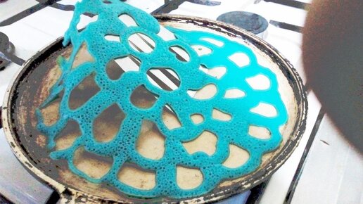 Наша бабушка умеет печь кружевные блинчики, а у меня такие не получаются. Пришлось приспосабливаться и наливать тесто через пластиковую бутылку с тонкими отверстиями в крышке. Что вам понадобится: Возьмите шило. Сделайте им в крышке от бутылки три небольших отверстия. Я пробовала наливать тесто на сковороду через одно большое отверстие, мне не понравилось. Струйки получаются тоньше, а «кружева» красивее, если в крышке три небольших дырочки. Заведите блинное тесто в удобной ёмкости. Для новогоднего настроения я добавила в тесто пищевой краситель голубого цвета...