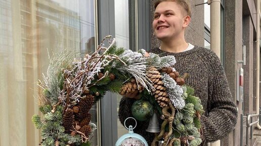 Угадайте с 3 раз, какие будут больше цеплять клиентов и стоить дороже? Ну а чтобы не быть голословным, хочу сегодня поделиться с вами историей вот такого чудесного венка с часами 🕰️ Композиция получилась ОГРОМНОЙ! Можете прикинуть размер по фото, с учётом моего роста в 190 сантиметров. Вдохновился на такую работу я очень классным интерьером, частью которого он и должен был стать. Задумка была задействовать в венке искусственную хвою, что собственно я и сделал не скупясть на разные виды и фактуры...