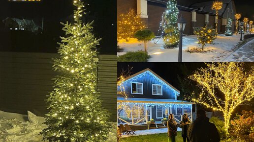 Как украшают деревья на улице на Новый Год в частном доме