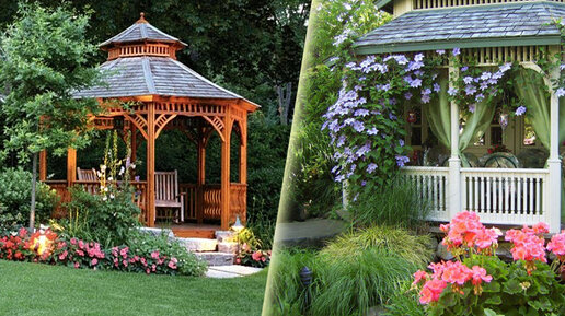 Как оформить снаружи садовую беседку и эффектно украсить пространство вокруг нее