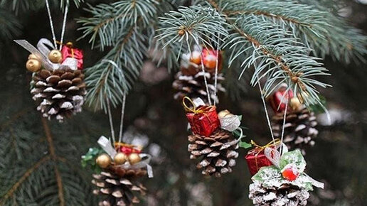 Как украсить шишки на Новый год