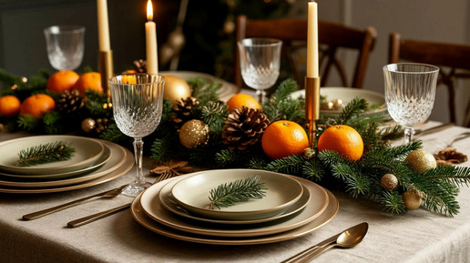 Представьте, что ваш праздничный стол — это сцена. На ней разворачивается главное действие вечера — общение, радость, вкусная еда. Задача декора не затмить это действие, а создать для него идеальный фон. Вам не нужны дорогие дизайнерские вещи. Нужно знание простых принципов, которые работают безотказно. Правило первое: начните с основы Первое впечатление создает скатерть или дорожка. Именно она задает тон. Откажитесь от ярких синтетических тканей с кричащими новогодними рисунками. Выбирайте натуральные материалы и сдержанные цвета...