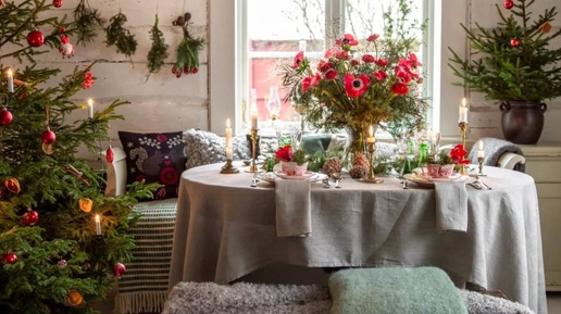 Ищете идеи, как оформить новогодний стол? Посмотрите нашу подборку, здесь почти два десятка вариантов с фото и видео. Тут композиции в вазах, венки из лапника и мха, мини-ёлочки, эффектные свечи и многое другое. Смотрим и вдохновляемся! Вот такую интересную композицию для новогоднего стола можно сделать из искусственной еловой гирлянды. Блогер mesa_posta_brasil подробно показала, как сделать такое украшение. Бокалы для вина нужно перевернуть, обмотать гирляндой и украсить, например, сюда хорошо подойдут ёлочные шары...