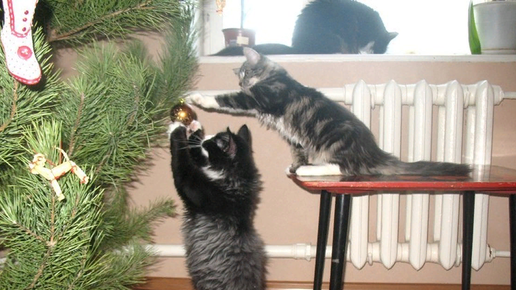 Как отучить кошку лазать на ёлку