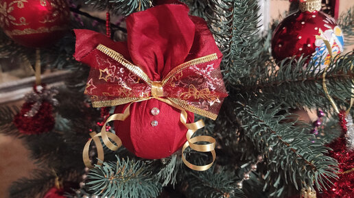 Сегодня переделываем шар. Я, как самая ленивая жопа на диком западе, решила особо не заморачиваться. Новый год уже на носу, стремных шаров много, а времени на снятие краски, грунтовку, разрисовку, вышивку, лепку, и тд. и тп. нет. Да и лень, если честно. По этому делаем быстро. Нужны всего лишь красивый кусок ткани, какой-нибудь клей и лента. Ну и стразики по желанию. Замеряем диаметр шара и умножаем на три. Прибавим ещё пару см, на всякий. Из ткани надо вырезать квадрат с такой длиной стороны. Заворачиваем шар в ткань, чтобы хвосты квадрата смотрели на верх, в сторону хвостика...