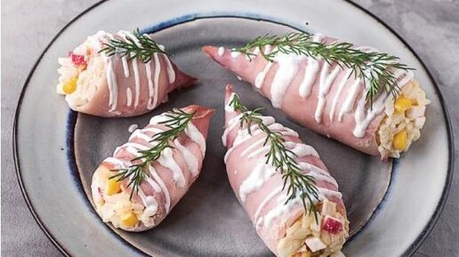 К новогоднему столу 2020: кальмары, фаршированные вкусным салатом