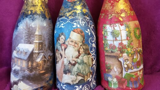 Думаю, никого не удивлю этой идеей новогоднего подарка. Но вдруг вы забыли про такой замечательный и оригинальный подарок - новогоднее шампанское? Я, вот, чуть не забыла про него в этом году))) Делается такое праздничное шампанское очень легко. Нам нужно: 1. Шампанское 2. Белая акриловая краска и краска других цветов для фона. 3. Клей ПВА 4. Салфетки с новогодними рисунками. Или декупажная карта или открытка 5. Кисточки, ножницы 6. Клеевой пистолет 7. Блестки, искусственный снег для украшения Как делать: 1...